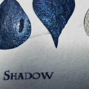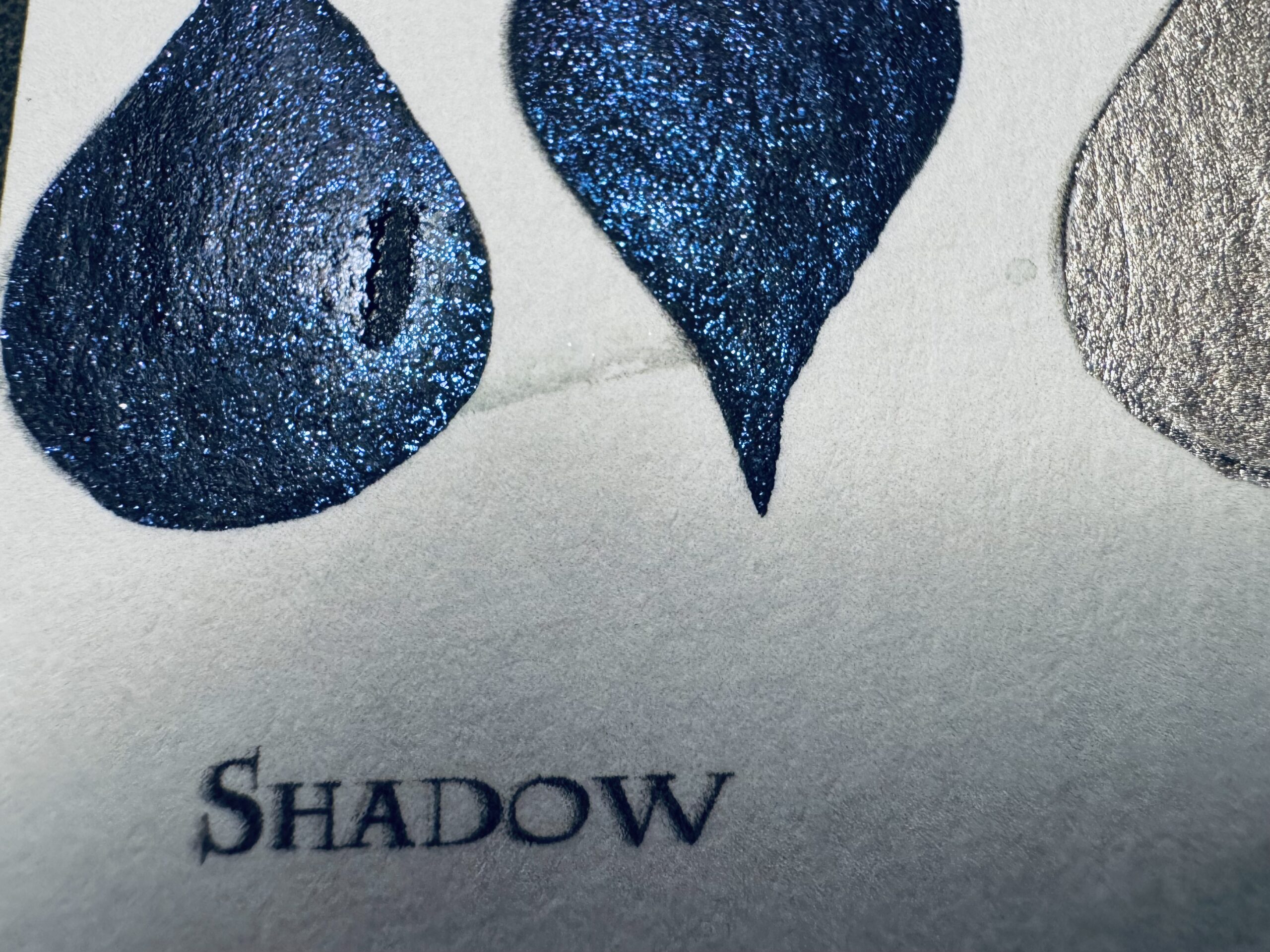 Shadow: ein tiefes Schwarz mit blau- und lilafarbenem Glitzer, das im Licht geheimnisvoll schimmert, wie ein nächtlicher Sternenhimmel auf dunklem Grund.
