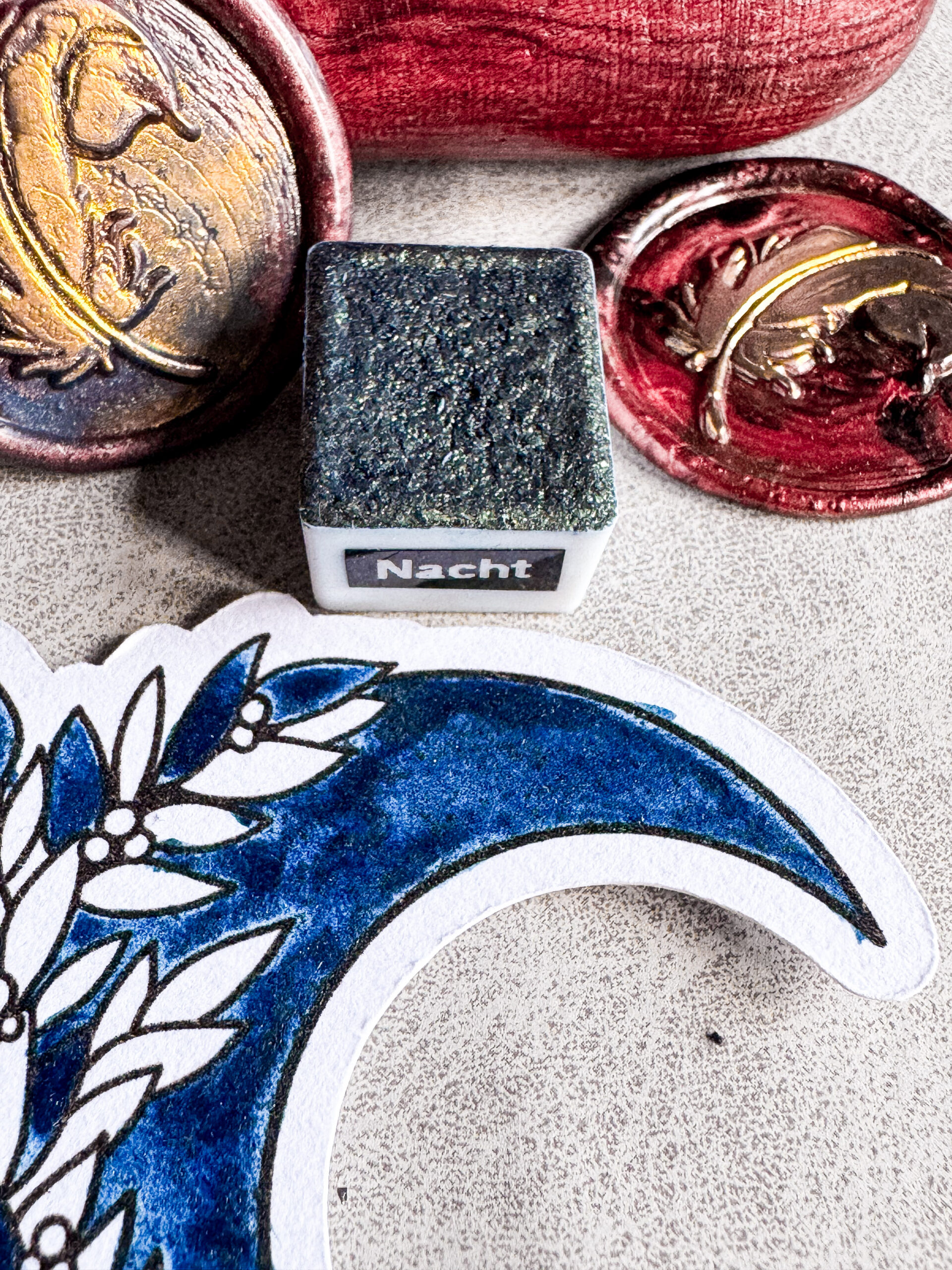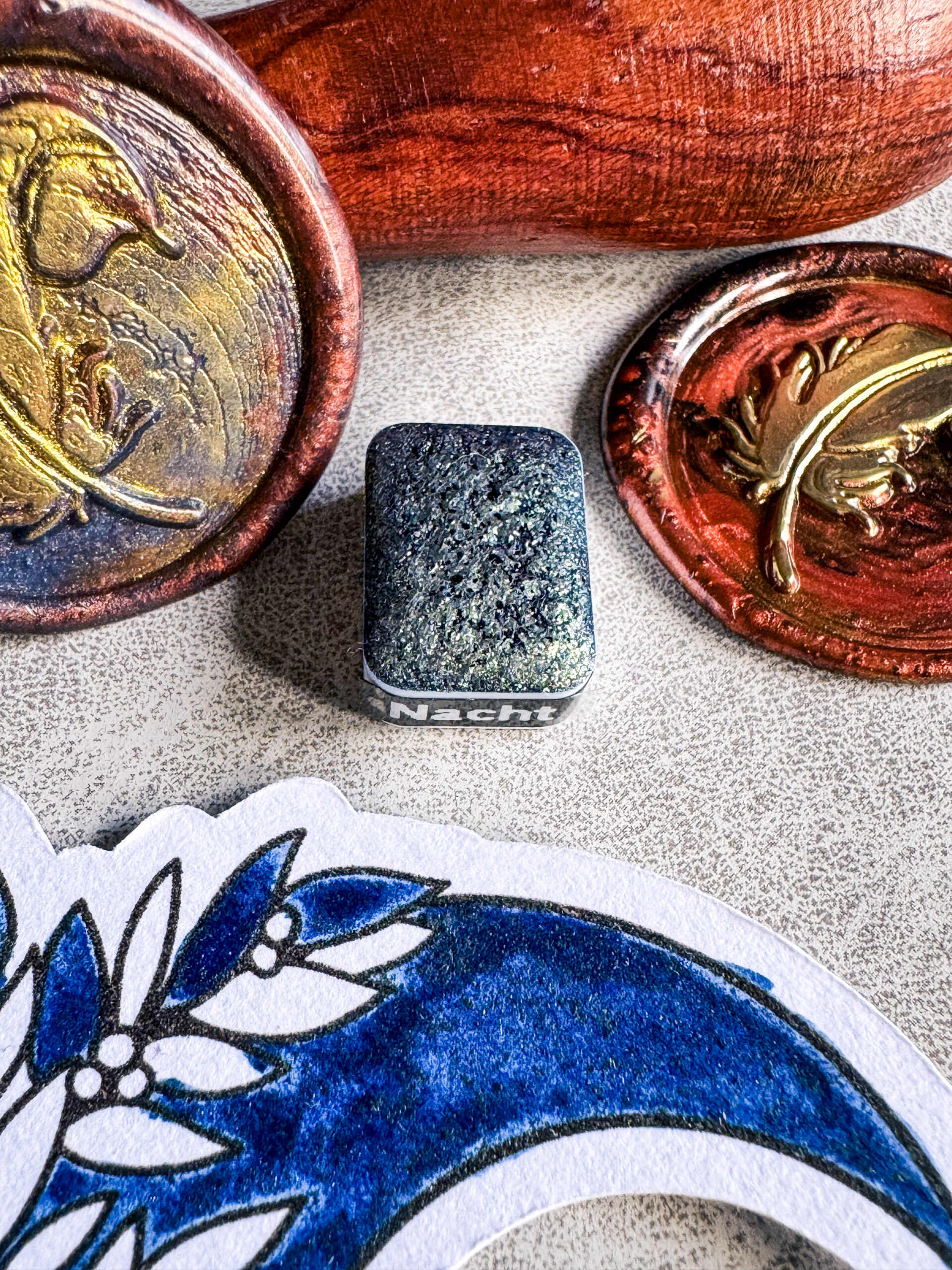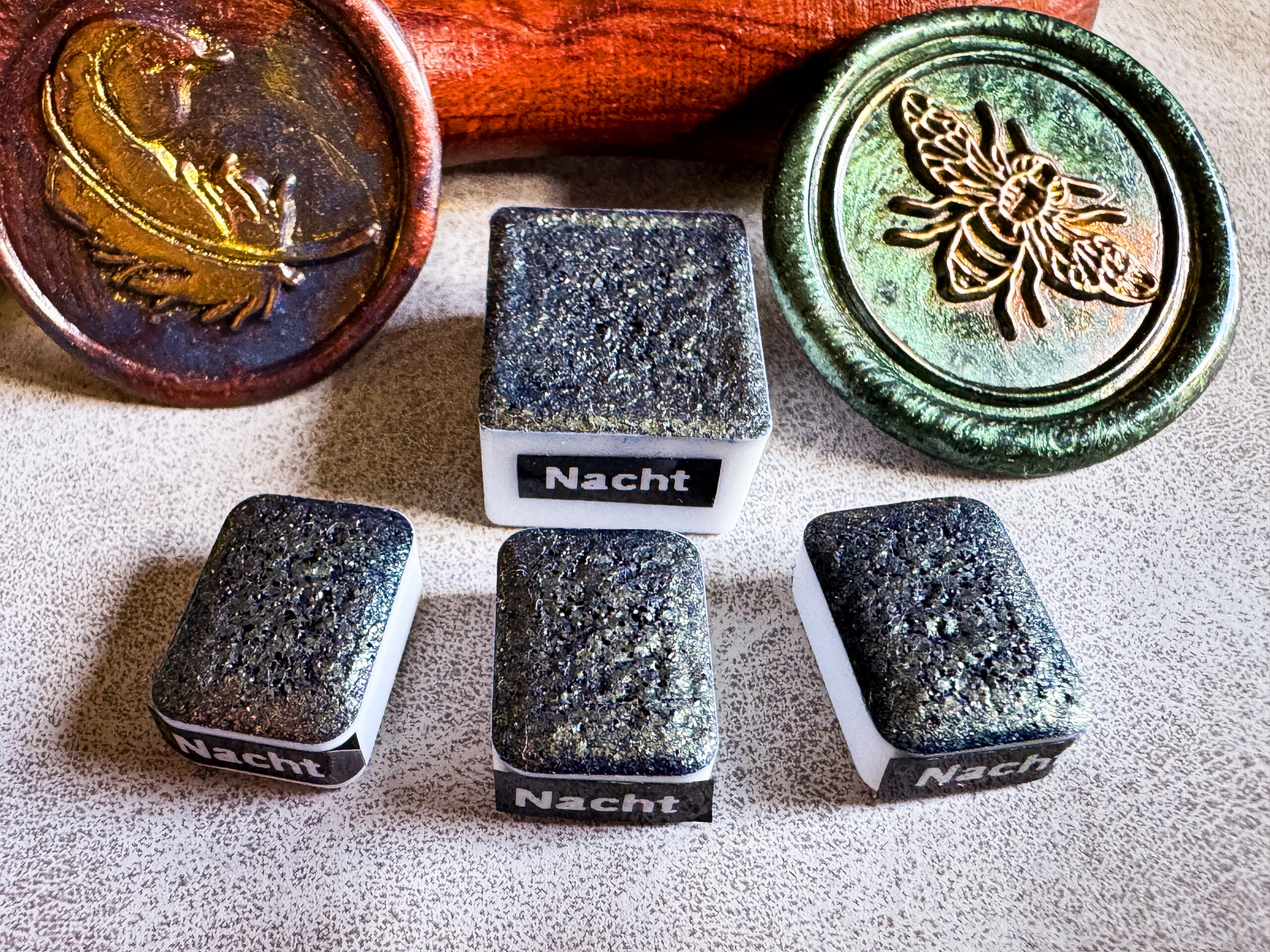 Tauche ein in die Tiefe der Nacht mit dieser intensiv schimmernden Aquarellfarbe. „Nacht“ ist ein geheimnisvoller, dunkler Blauton mit feinem Schimmer, der je nach Lichteinfall in Grün, Blau oder Anthrazit changiert.